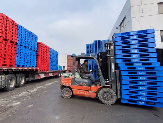 產品造型新穎,四面插口能配合機械叉車和手動液壓搬運叉車使用,多方位完成對貨物的搬運、周轉和堆碼,大大保證使用效率。